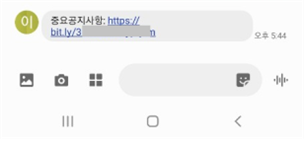 □ 개 요 o 최근 “중요공지사항: 단축URL” 스미싱 문자를 통해 크롬 업데이트를 가장한 악성앱을 설치하는 유형이 신규 발견됨에 따라 2차 피해로 연계되지 않도록 사용자 주의 필요