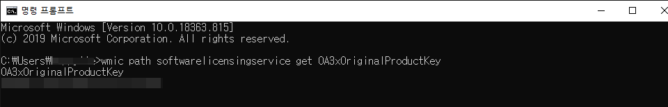 $ wmic path softwarelicensingservice get OA3xOriginalProductKey