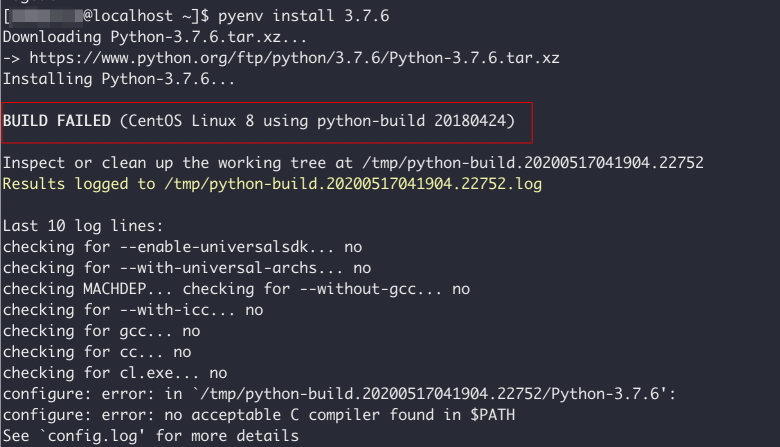 오랜만에 CentOS 7 -> 8로 갈아타서 동일하게 pyenv를 설치하려고 하였으나, 아래와 같이 "pyenv install 3.7.6" 시 오류가 발생 했다. "BUILD FAILED (CentOS Linux 8 using python-build 20180424)"