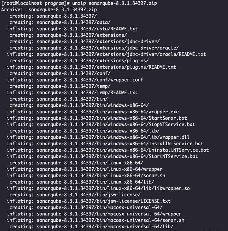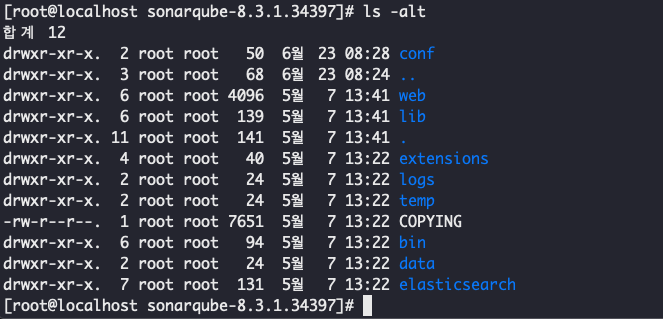 이와 같이 sonarqube-8.3.1.34397 디렉토리가 생성 됨을 확인 할 수 있다.