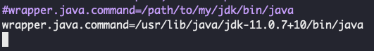 이제 확인한 java 위치를 wrapper.conf 파일 내 "wrapper.java.command" 항목에 추가 하도록 하자.