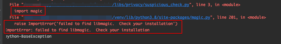 그중 magic Module(모듈)을 사용하는 부분이 있는데 새로운 MacBook에서 아래와 같은 에러가 발생하면서 libmagic를 찾지 못하였다.