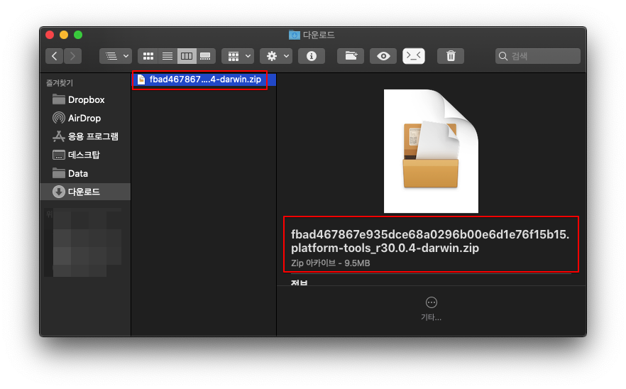 파일을 다운로드하면 Hash값. platform-tools_r30.0.4-darwin.zip 파일을 확인할 수 있다.
