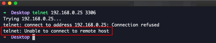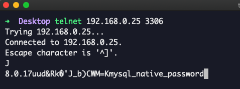$ telnet 192.168.0.25 3306