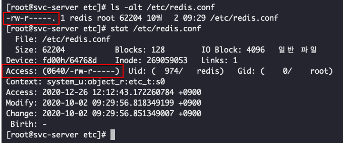 -rw-------. 1 redis root 62204 10월 2 09:29 /etc/redis.conf
