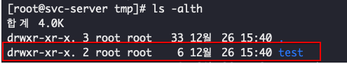 drwxr-xr-x. 2 root root 6 12월 26 15:40 test