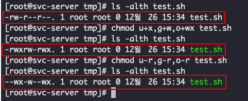 --wx-w--wx. 1 root root 0 12월 26 15:34 test.sh