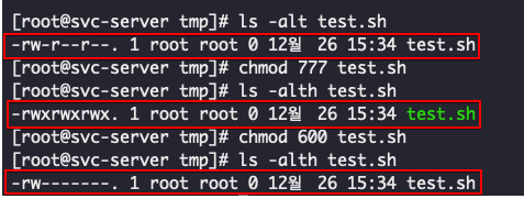 -rw-------. 1 root root 0 12월 26 15:34 test.sh
