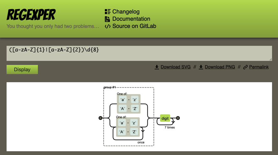 - 정규표현식 : ([a-zA-Z]{1}|[a-zA-Z]{2})\d{8}