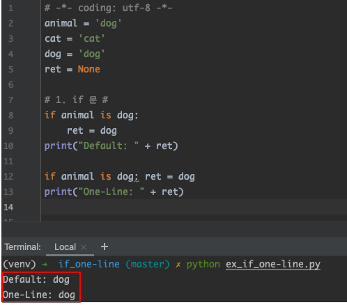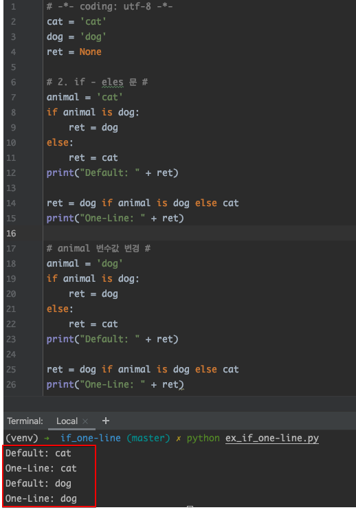 아니면 코드 리펙토리(Code Refactoring)를 진행할 때 조건문을 한 줄로 변경하는 방법도 있다.
