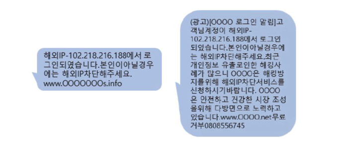 - 비정상 로그인이 발생했다는 문자를 통해 가상자산거래소 피싱 사이트 접속을 유도