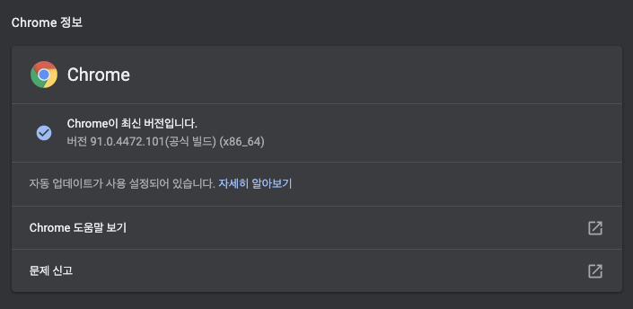 - 크롬 브라우저 91.0.4472.101 로 업데이트 진행