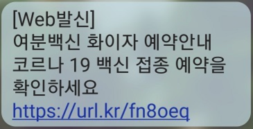 - 최근 코로나19 여분 백신 예약 안내를 사칭한 피싱 문자가 유포되고 있어 사용자 주의 필요