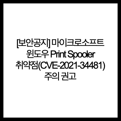 - 2021.07.03 - [Security/보안 권고문(공지문)] - [보안공지] 윈도우즈(Windows) Print Spooler 취약점 보안 업데이트 권고