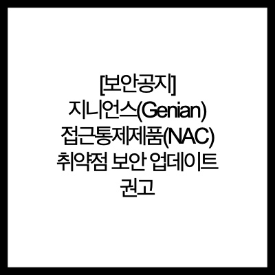 - 지니언스 NAC(Genian Network Access Control) 제품에서 발생하는 보안 취약점에 대한 보안 업데이트 공지 [1]