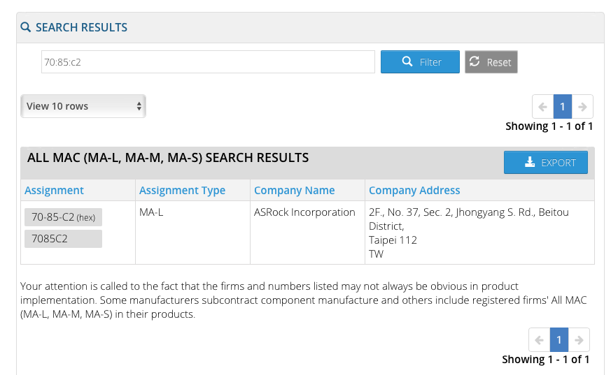 ifconfig를 통해서 확인된 Mac Address정보를 통해서 해당 NIC Card의 제조사를 알 수 있는 방법이 있다.