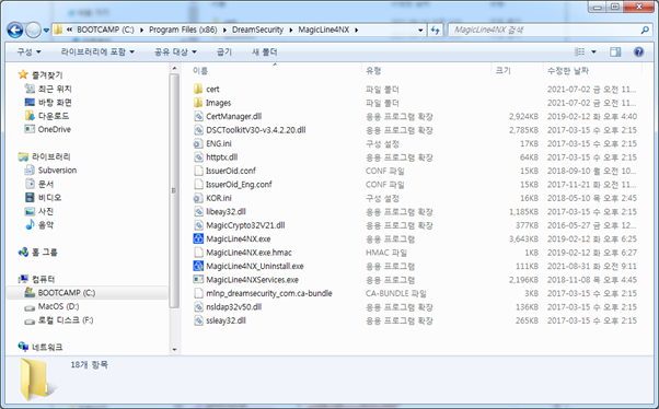 - [내 컴퓨터] – [로컬 디스크(C:\)] – [Program Files(x86)] – [DreamSecurity] – [MagicLine4NX] 경로로 이동