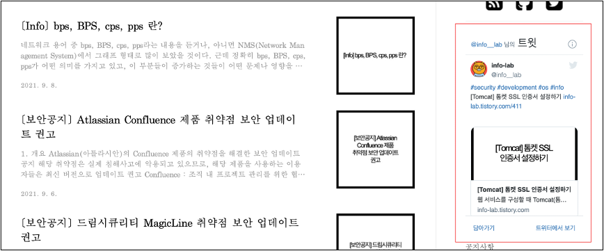 5. 티스토리에 트위터 위젯 적용 확인하기